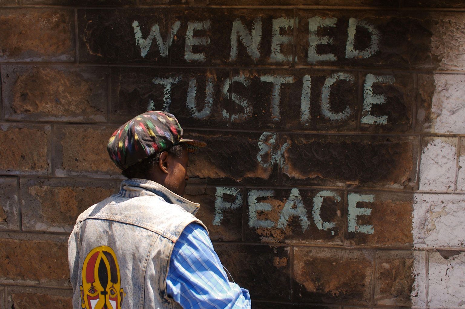 Kenyan artist SOLO 7 paints the streets with his political slogans in Kibera, a slum outside of Nairobi, Kenya, the scene of some of the worst post-election violence and protests following disputed election results. Kibera, Kenya. Jan 28, 2008. —Daniel McCabe/ZUMA Press/Alamy